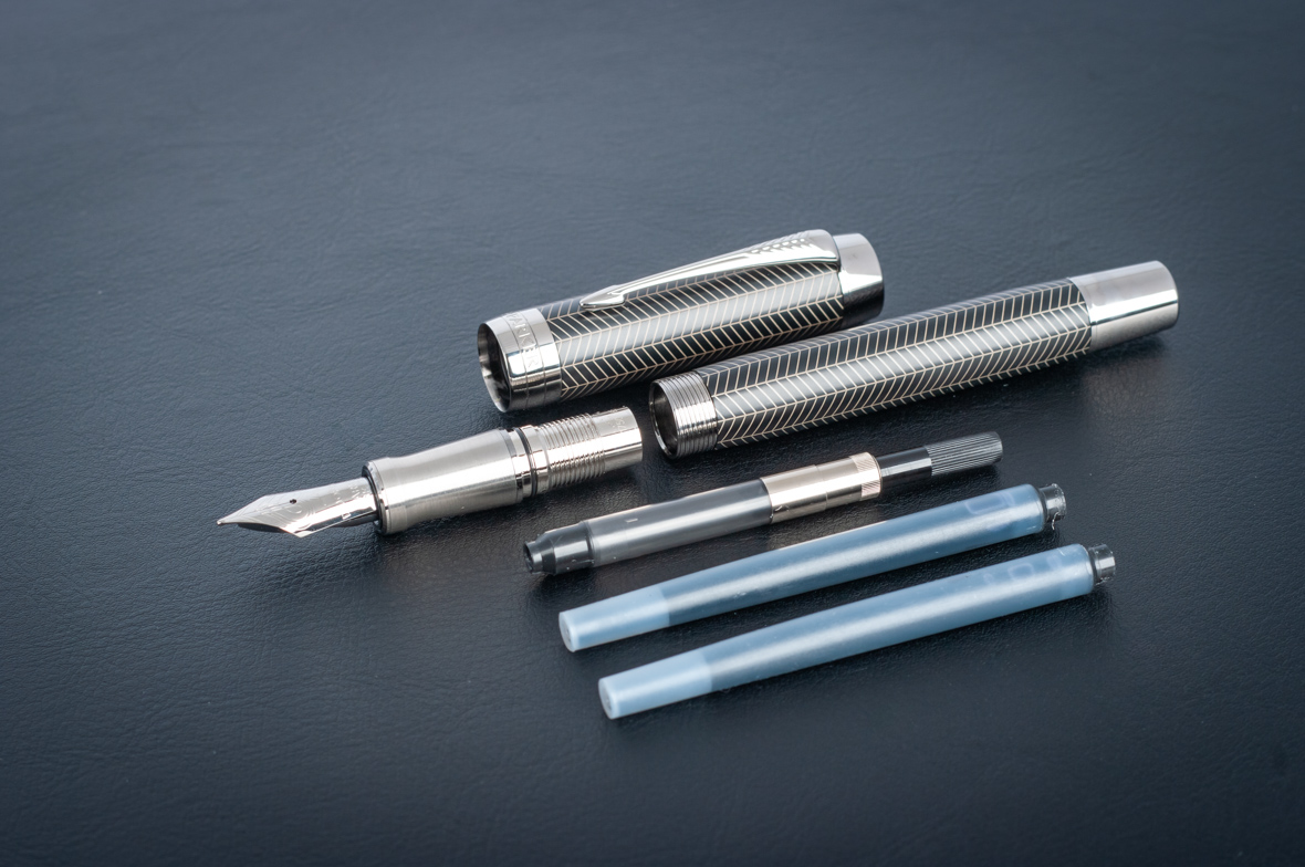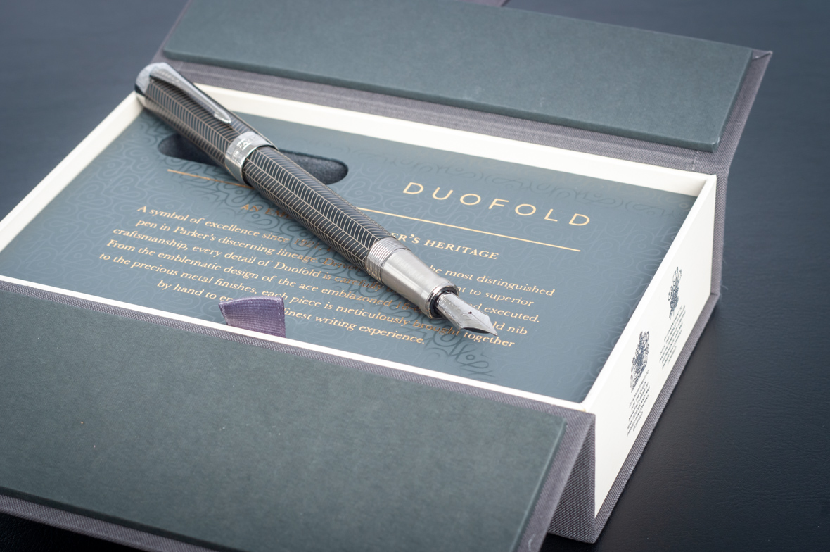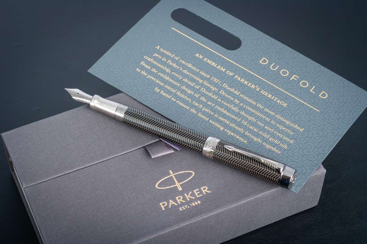 Перьевая ручка Parker Duofold Prestige Centennial Black Chevron CT от официального дилера Parker в Новочебоксарске. Вы можете дополнительно заказать гравировку, которая подчеркнет Вашу оригинальность и придаст памятность статусному подарку. Все ручки Паркер поставляются в фирменном футляре.